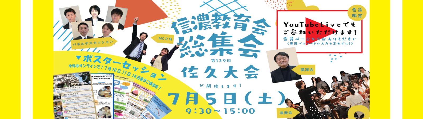 - 2025/06/18 行事・大会 第139回 信濃教育会総集会 佐久大会 が開催されます YouTubeLiveによる同時配信も行います ポスターセッション(オンライン)参加者募集中