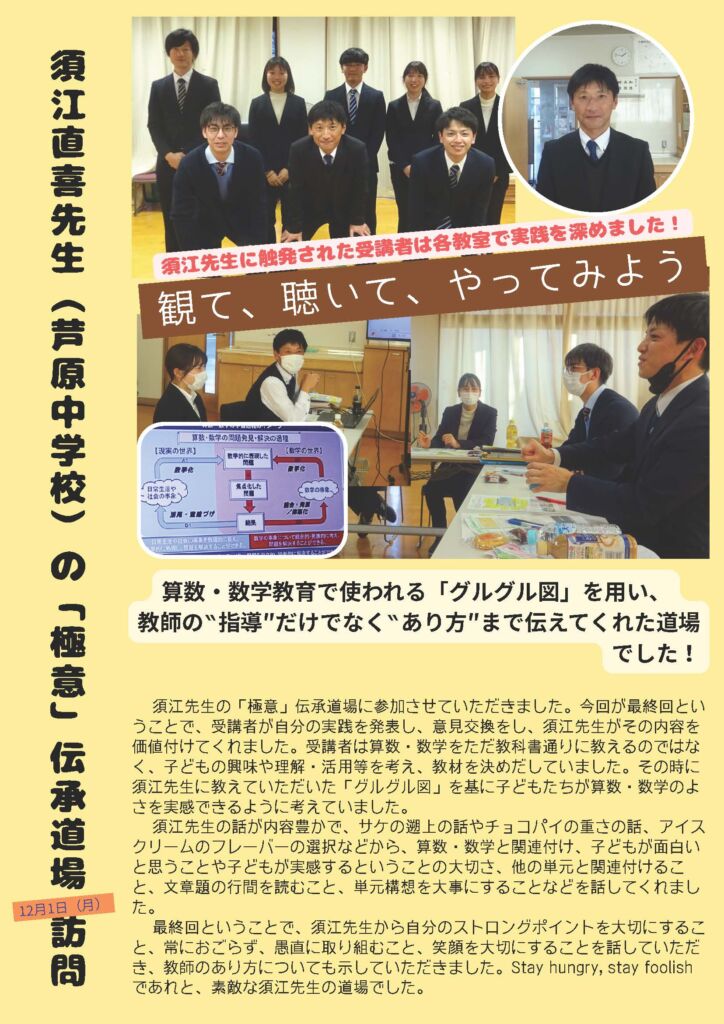 長野県内で優れた実践を積み重ねている先生方の、指導上の「極意」を直接学ぶことを通して、「人から人へ」伝承することをめざす。